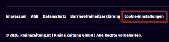 Cookie-Einstellungen auf hilfe.kleinezeitung.at