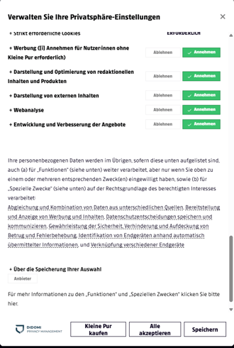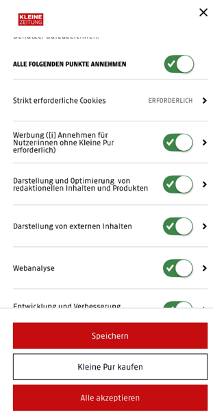 Cookie-Einstellungen in der Kleine Zeitung APP